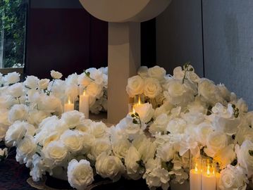 Create the ultimate luxury setup with our large floral stands and realistic faux candles. Perfect for around your booth, these stunning florals paired with the soft glow of faux candles will add elegance and warmth. Elevate your space and make your phonebooth area truly unforgettable!