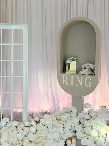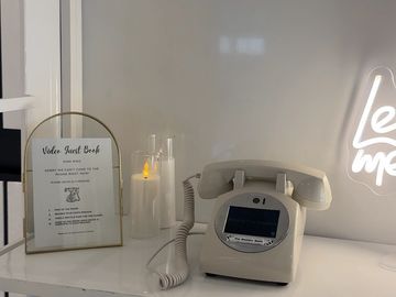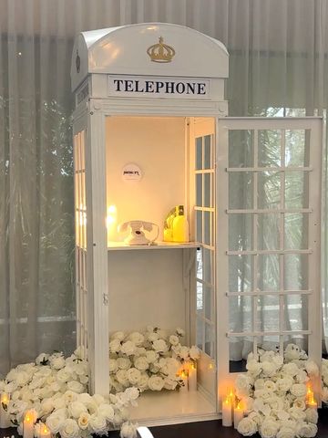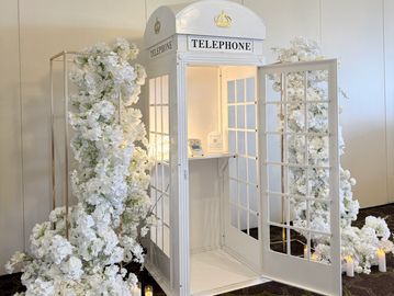 Elevate your booth’s aesthetic with our luxury faux candles and stunning white florals. Our florals can be set up inside and around the outside of the booth. This elegant setup will add a touch of sophistication and create an inviting ambiance that will make your phonebooth area stand out even more!
