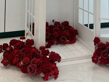 Elevate your booth’s aesthetic with our luxury faux candles and stunning red florals. Our florals can be set up inside and around the outside of the booth. This elegant setup will add a touch of sophistication and create an inviting ambiance that will make your phonebooth area stand out even more!
